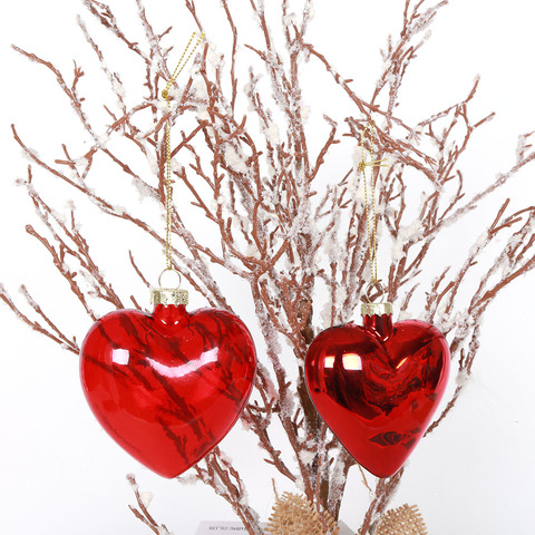Vendita calda ornamenti per l'albero di natale vetro rosso trasparente decorazione galvanica ciondolo appeso a sfera d'amore