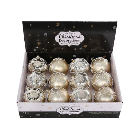 Оптовая продажа по индивидуальному заказу, 8 см, золотые небьющиеся пластиковые украшения для новогодней елки, Набор рождественских шаров, украшения